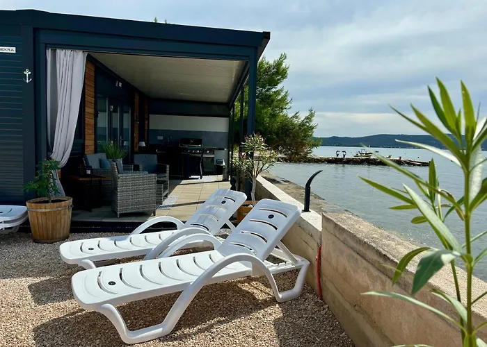 Vila Mobilhome-Kroatien 2 Premium Mobilheime - Direkt Am Meer je situována 25-minutovou chůzí od Mala Bisaga ve městě Sveti Petar, nabízí ubytování s kuchyňkou. Nabízí se terasa s výhledem na moře.